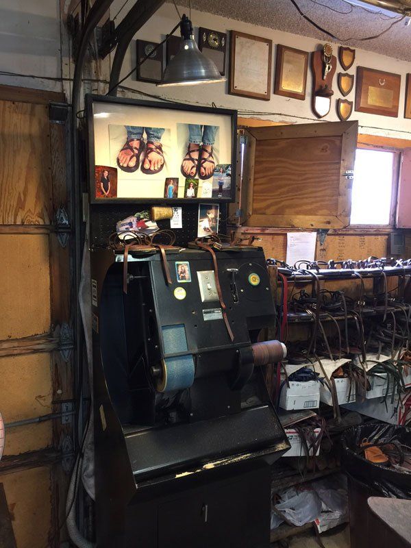 This is the machine we use to sew your American made sandals together. Built in Saint Louis, MO in 1937. It is an American Straight Needle Machine. The company has not existed since the early 60’s. What a concept.